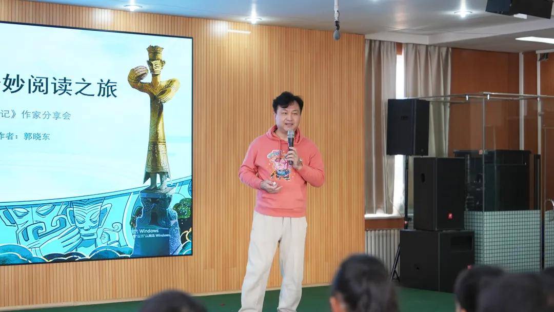 10月29日下午,知名儿童文学作家郭晓东走进垂杨柳中心小学景园分校,以“从三星堆到山海经 奇妙阅读之旅”——《三星堆寻梦记》《三星堆神游记》作家分享会为契机,与百余位景园学子展开热烈的阅读分享与交流。