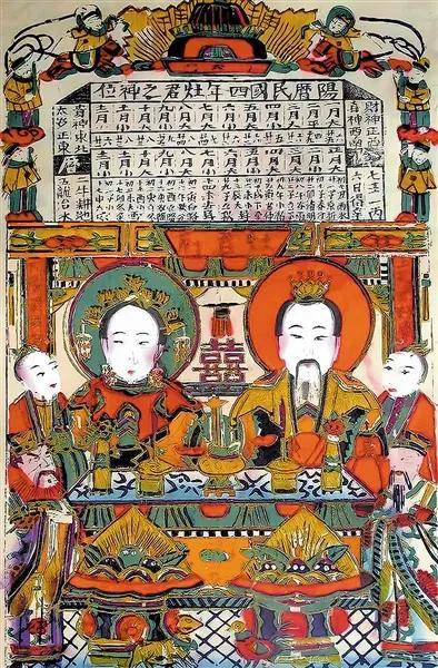 东丰台年画的每一幅作品,都是一段民俗故事的载体。早期的年画多以避邪迎福的神祗题材为主,灶王、财神、门神是最常见的主角,其中《灶神》年画的细节尤为有趣——若是家中筹办喜事,灶王爷与灶王奶奶之间会刻有双喜字;若是寻常日子,则露出半个小人图像,提醒家人提防“背后小人”,这份贴合生活的巧思,尽显民间艺人的细腻观察。