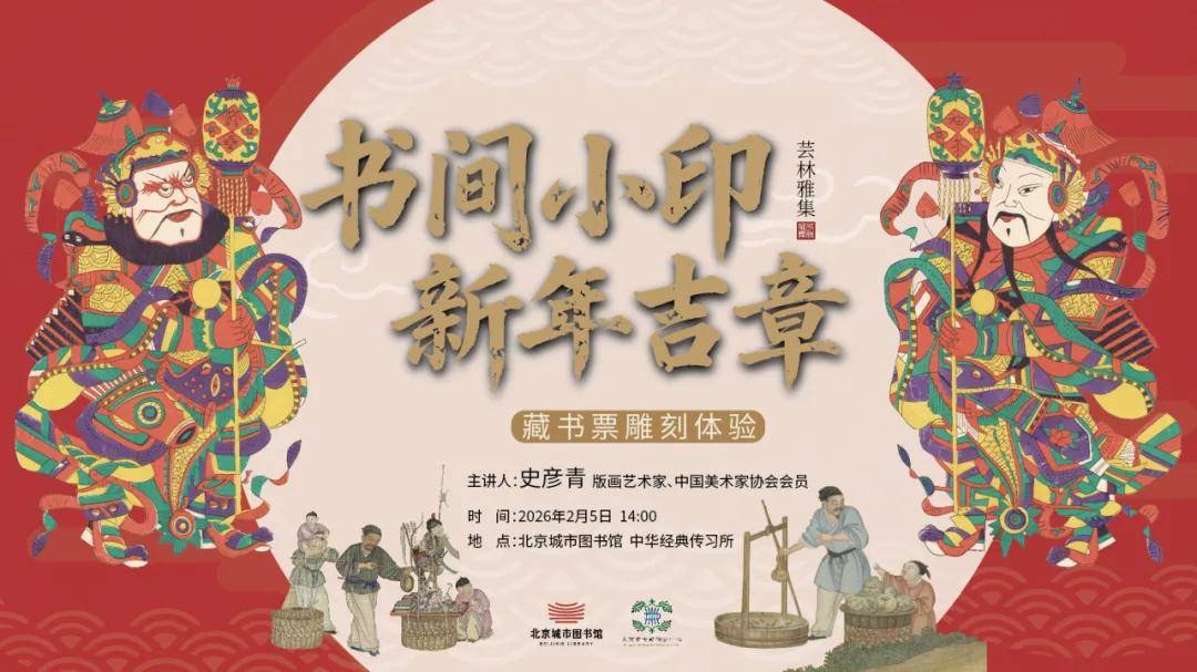 2026年2月5日,北京崇德堂博物馆受邀于北京城市图书馆举办“书间小印·新年吉章”藏书票雕刻体验活动。崇德堂博物馆非遗老师史彦青出席讲课,带领大家制作以门神形象为主图的藏书票。