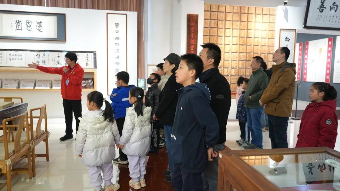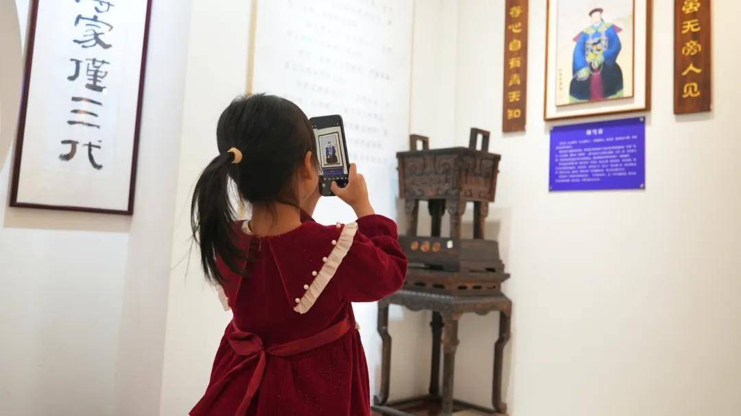 活动伊始,在讲解员的带领下,家长与孩子们共同参观了崇德堂博物馆的常设展区。一方方匾额,承载着家风家训与历史记忆,讲解员以生动有趣的语言,讲述了匾额背后的故事,让孩子们在沉浸式体验中感受传统文化的深厚底蕴。