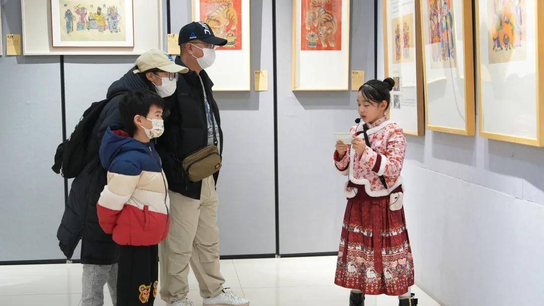 随后,6名“小小讲解员”闪亮登场。他们分散在年画展各区,从题材寓意到印制工艺,用稚嫩而认真的讲解,带领来访家庭走进年画的缤纷世界。孩子们自信满满的表现,赢得阵阵掌声,也成为活动中一道亮丽的风景线。