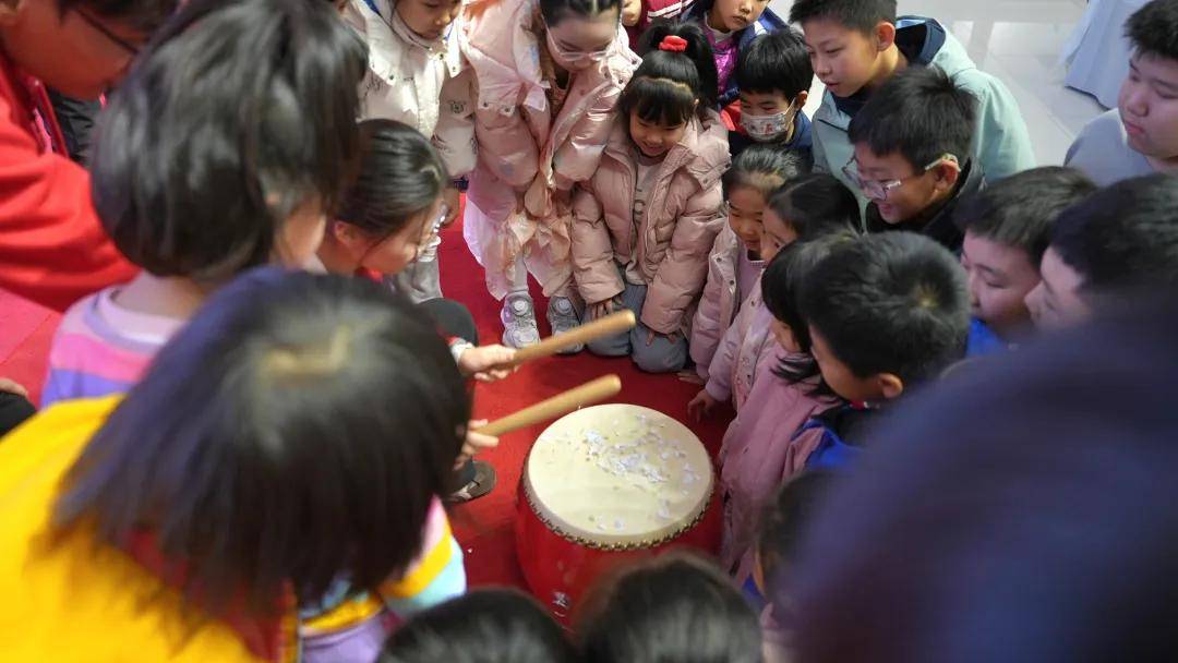“惊蛰是二十四节气中的第几个节气?”“惊蛰三候指的是什么?”孩子们争先恐后地举手回答,在问答中了解了惊蛰的由来、物候特征与传统习俗。从祭祀龙王、雷公、白虎的农事祈愿,到舞龙祈福、吃梨盼丰年、蒙皮鼓迎新,孩子们在轻松愉快的氛围中,感受古人顺应自然的智慧。