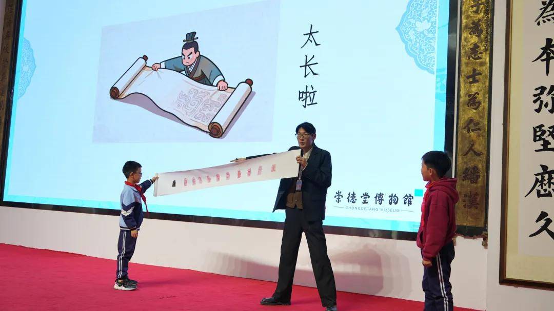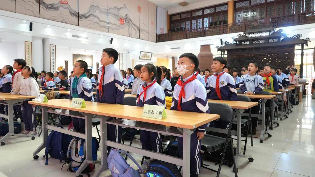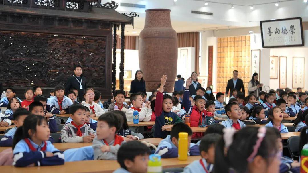 博物馆的老师带领学生们齐声诵读《少年中国说》。孩子们稚嫩的嗓音里满是赤诚,一声声,一句句,凝聚成磅礴的力量,在崇德堂博物馆的文化大讲堂内久久回荡。拳拳爱国情、凌云少年志,就在这此起彼伏的诵读声中,深深植入孩子们的心田。