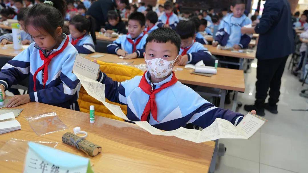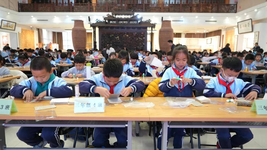 从龟甲到竹简、从纸张到数字,博物馆的讲师娓娓道来文字传承的不断演进;从卷轴装到经折装,传统装裱工艺之美在学生们的眼前一一铺展。