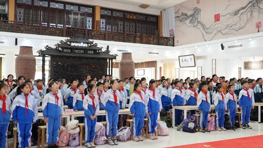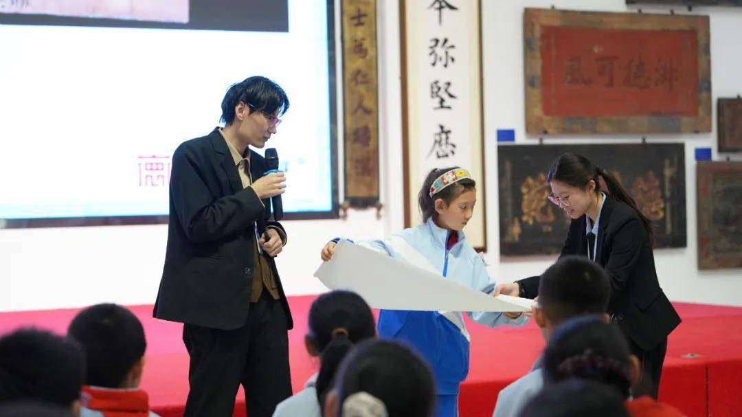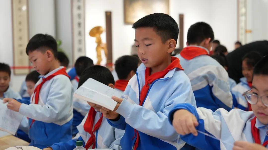 11月21日下午,北京市朝阳区垂杨柳中心小学景园分校370名四至六年级少年踏着冬日的暖阳,走进崇德堂匾额博物馆,开启一场穿越千年的古书装帧文化之旅。在典籍中触摸华夏智慧,于实践中传承文脉基因。