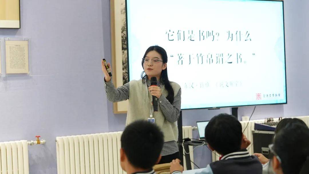 在专业老师引领下,孩子们踏上“书籍进化史”探秘之旅:从“纸前时代”的甲骨契刻,到简牍帛书的轻盈流转;从卷轴经折的实用革新,到蝴蝶装、包背装的工艺突破,最终定格于线装书的经典形制。每一步演变都暗藏文明传承的密码,孩子们通过实物触摸,直观感受中华典籍的智慧沉淀。