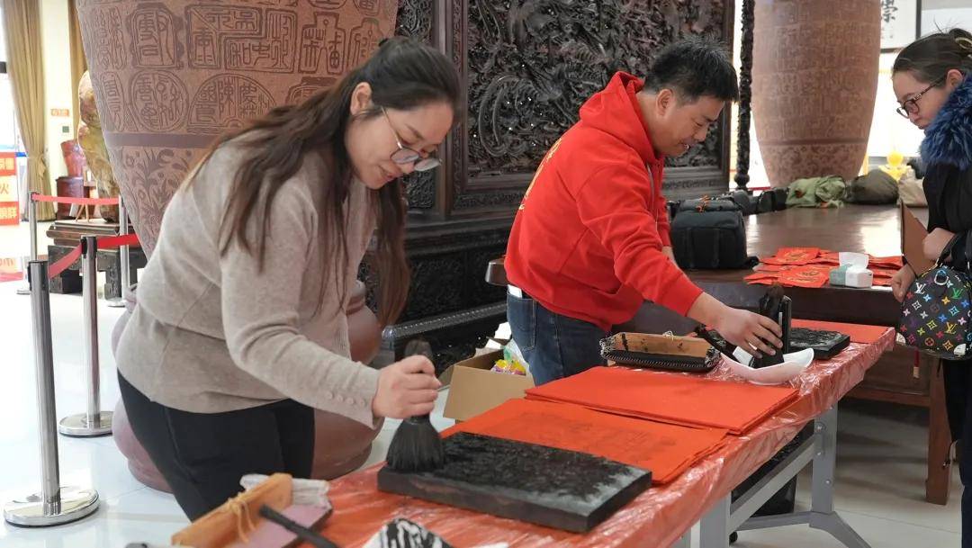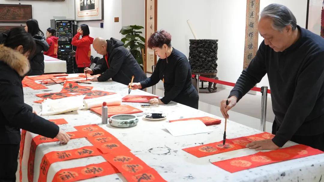 博物馆里红纸铺案、笔墨飘香。书法家们笔走龙蛇,一字一墨皆承新春祈愿与慈善温情。