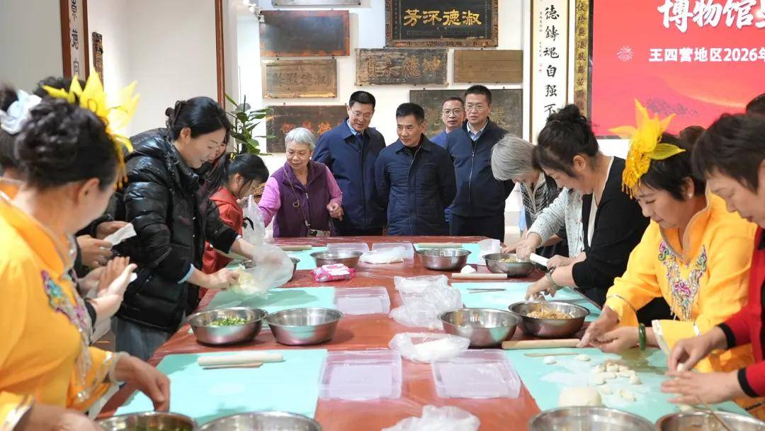 互动体验环节,乡领导与居民们一起擀皮、包饺子,共享烟火年味。