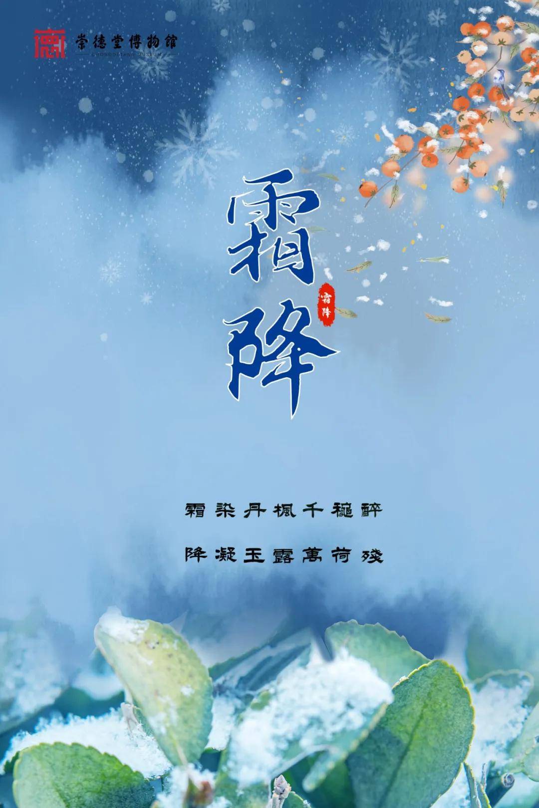 霜降是秋天的最后一个节气,也是秋冬过渡的时节。此时节,夜晚温度降至0摄氏度以下,附着在地面或植物上的水珠凝华成固态的白色冰晶——霜,“霜降”之名由此得来。