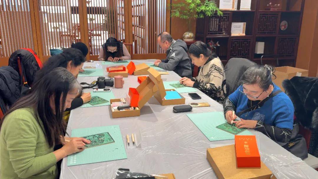活动现场,体验者们在史彦青老师的悉心指导下,感受藏书票雕刻的独特魅力。大家在实操中细致观察门神线条特点,品味北京年画的古朴韵味;以刀为笔、以木为纸,或凝神静气,手眼合一,刻出利落直线;或双手协作,轻转木板,勾勒婉转曲线。