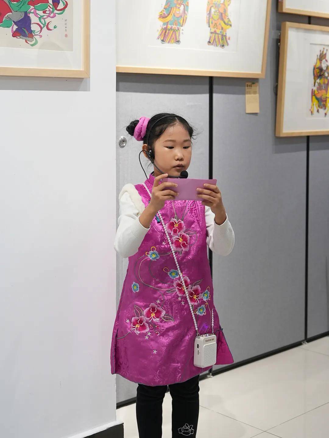 随后,6名“小小讲解员”闪亮登场。他们分散在年画展各区,从题材寓意到印制工艺,用稚嫩而认真的讲解,带领来访家庭走进年画的缤纷世界。孩子们自信满满的表现,赢得阵阵掌声,也成为活动中一道亮丽的风景线。