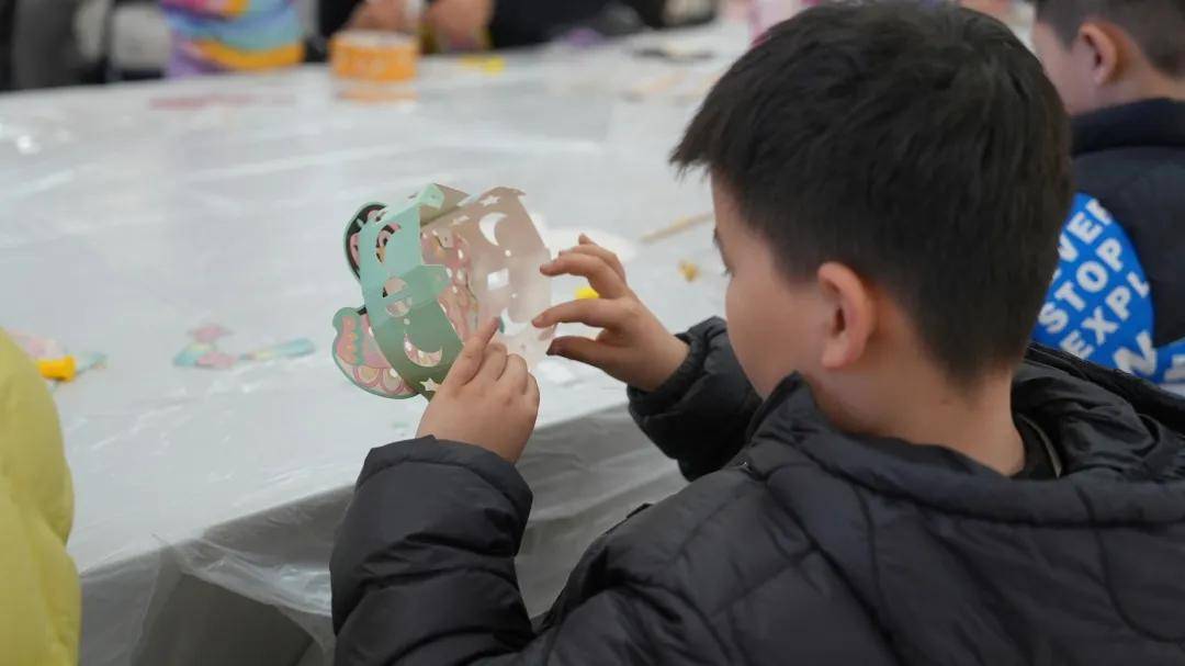 在老师的指导下,亲子家庭共同动手制作属于自己的元宵花灯。清出孔位、对折围条、固定双脚钉、安装LED灯泡、挂上吊穗……每一个步骤都凝聚着专注与创意。