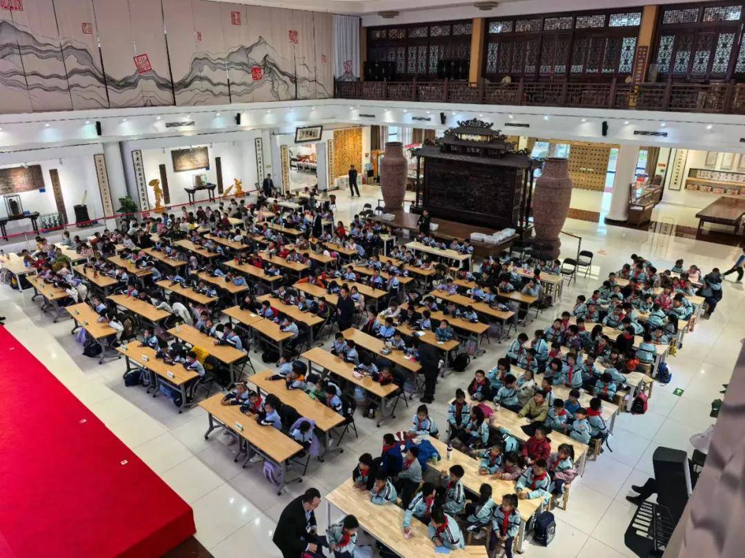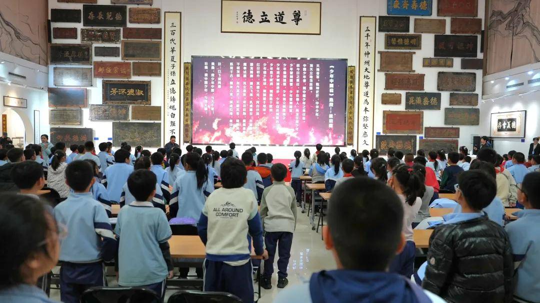 博物馆的老师带领学生们齐声诵读《少年中国说》。孩子们稚嫩的嗓音里满是赤诚,一声声,一句句,凝聚成磅礴的力量,在崇德堂博物馆的文化大讲堂内久久回荡。拳拳爱国情、凌云少年志,就在这此起彼伏的诵读声中,深深植入孩子们的心田。