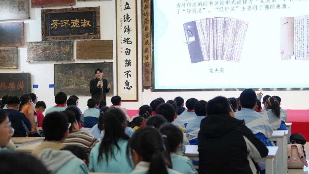 11月21日下午,北京市朝阳区垂杨柳中心小学景园分校370名四至六年级少年踏着冬日的暖阳,走进崇德堂匾额博物馆,开启一场穿越千年的古书装帧文化之旅。在典籍中触摸华夏智慧,于实践中传承文脉基因。