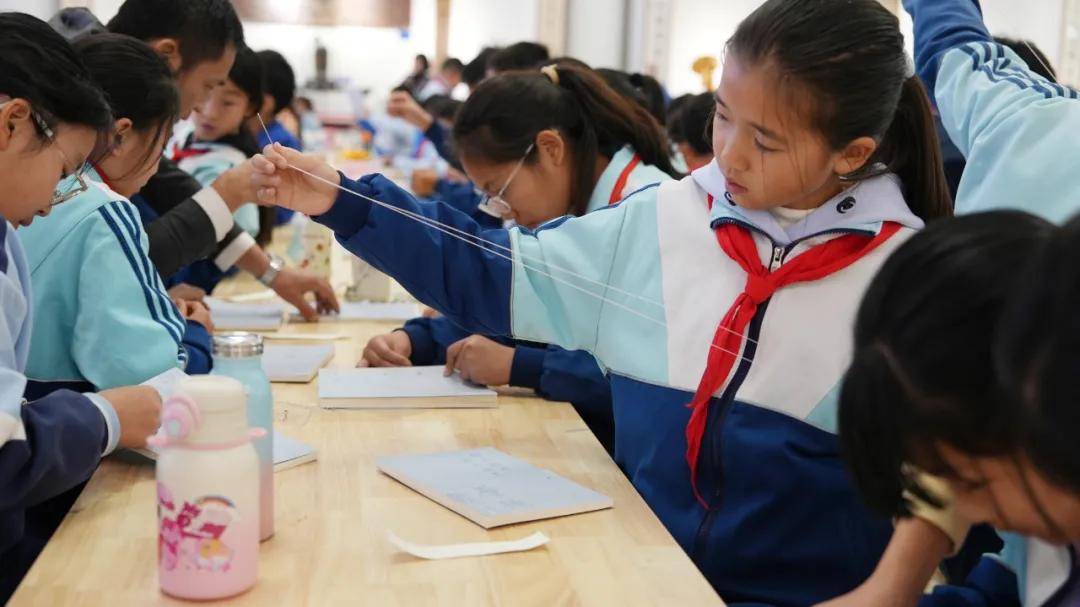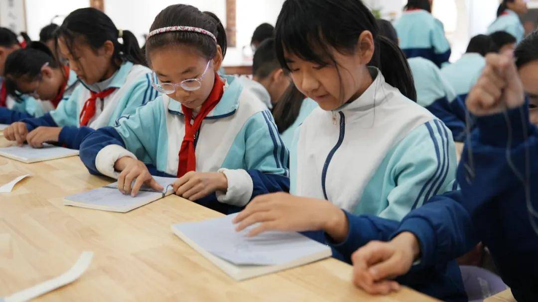 ”孩子们小心翼翼地穿线、装订,在穿针引线间感受传统工艺的精妙;从书中天头、地脚的留白设计中领悟“做人做事留余地”的东方智慧。当亲手装订的线装书逐渐成型,稚嫩的指尖下诞生出一本本古朴精致的书籍,孩子们脸上绽放出冬日暖阳般灿烂的笑容。