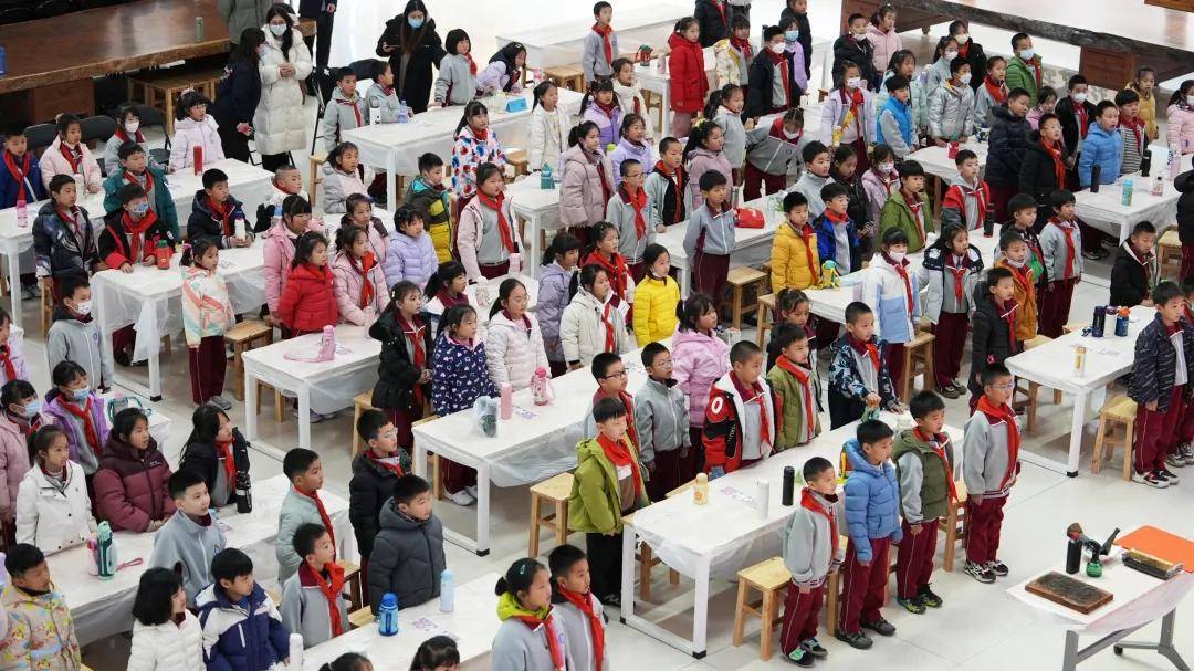 同学们昂首挺胸,齐声诵读《少年中国说》。屏幕上跳动的烈焰映照着他们瞳孔中坚定的信仰,稚嫩却铿锵有力的童音,饱含着他们对文化传承的责任感与爱国心。