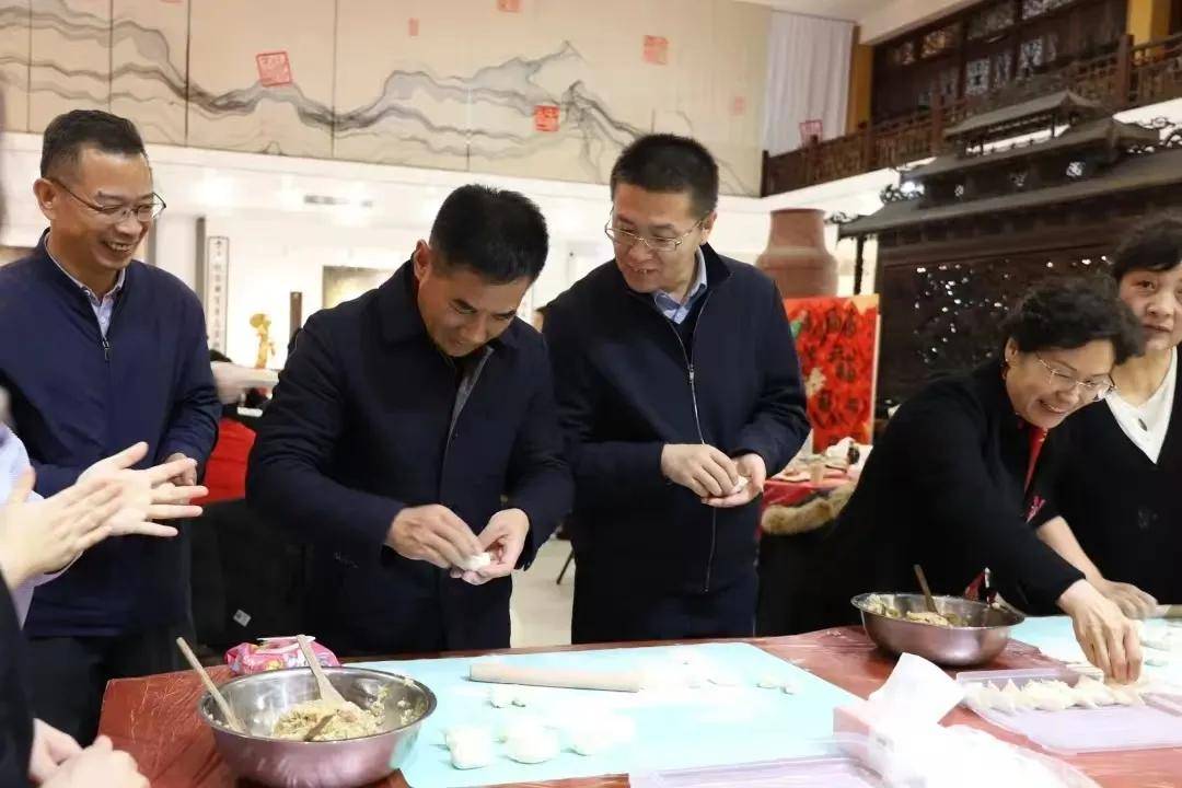 互动体验环节,乡领导与居民们一起擀皮、包饺子,共享烟火年味。