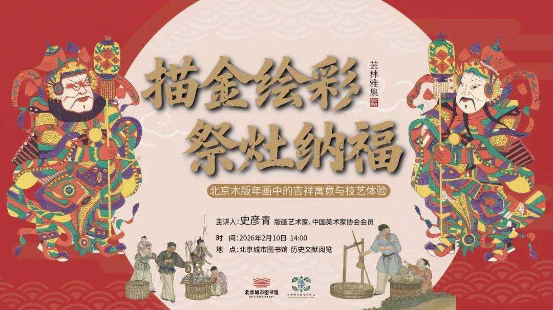 腊月二十三,糖瓜祭灶,新年来到!值此年味渐浓之际,北京崇德堂博物馆受邀于北京城市图书馆举办“描金绘彩·祭灶纳福”北京木版年画中的吉祥寓意与技艺体验活动。